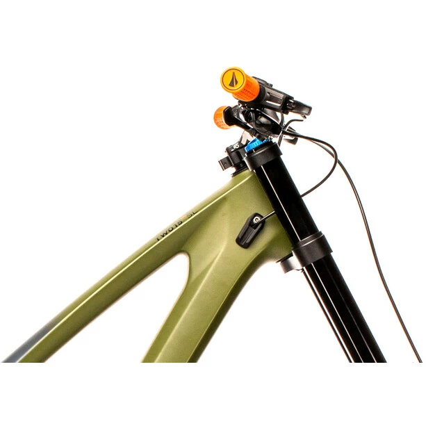 Große Laufräder, Carbonkonstruktion, ausgeklügelte Kinematik, progressive Geometrie – kurz: der brandneue Two15 HPC. Sein knackig kurzer Rocker, eine integrierte Sattelklemmung und die ästhetisch ins Design integrierten Drehpunkte betonen die cleane Optik des Rahmens – und der verlängerte Unterrohr- und Kettenstrebenschutz sorgt dafür, dass das Chassis selbst nach turbulenten Downhill Runs noch einwandfrei aussieht. Dazu kommen mehr Reach, ein flacherer Steuerrohrwinkel und eine optimierte Kinematik – allesamt Garanten für erstklassiges Handling. Außerdem hat Cube ein Angle Set verbaut, mit dem sich die Geometrie auf individuelle Vorlieben und Bedürfnisse abstimmen lässt.