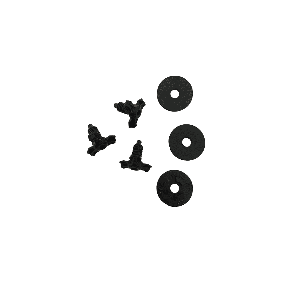 Das Schrauben-Kit besteht aus 3 dünnen Unterlagscheiben, 2 Seitenschrauben, sowie 1 Befestigungsschraube.