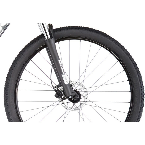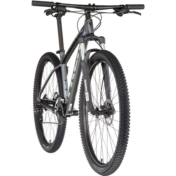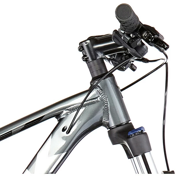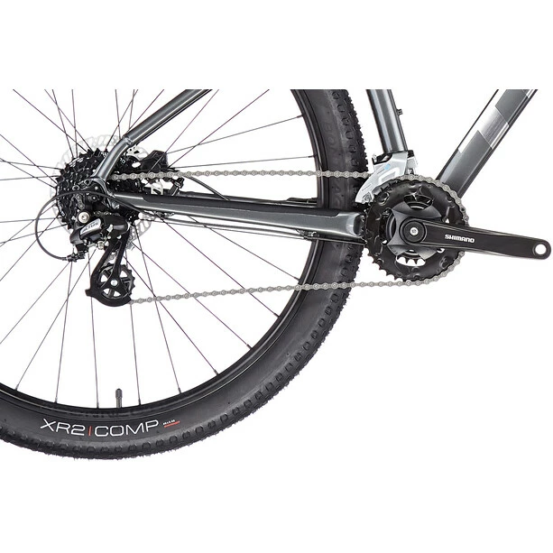 Einen leichten Aluminiumrahmen mit interner Zugführung zum Schutz der Schaltzüge und für einen sauberen Look sowie einen 2×8-Antrieb mit breitem Übersetzungsbereich, damit dir in jedem Terrain stets der richtige Gang zur Verfügung steht. Dazu gibt es kraftvoll zupackende hydraulische Scheibenbremsen und eine Federgabel mit Lockout, die Unebenheiten souverän entschärft.